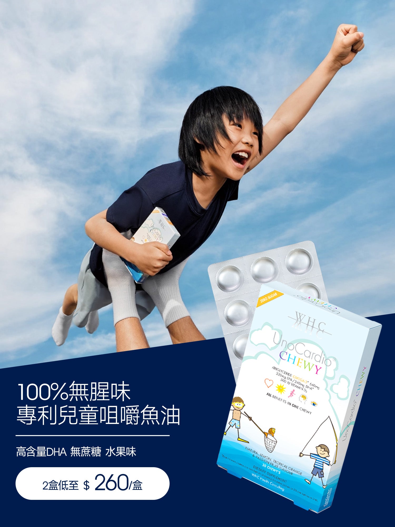 UnoCardio®CHEWY 小超人 兒童咀嚼啫喱魚油 增強免疫力 促進眼腦發育 30粒
