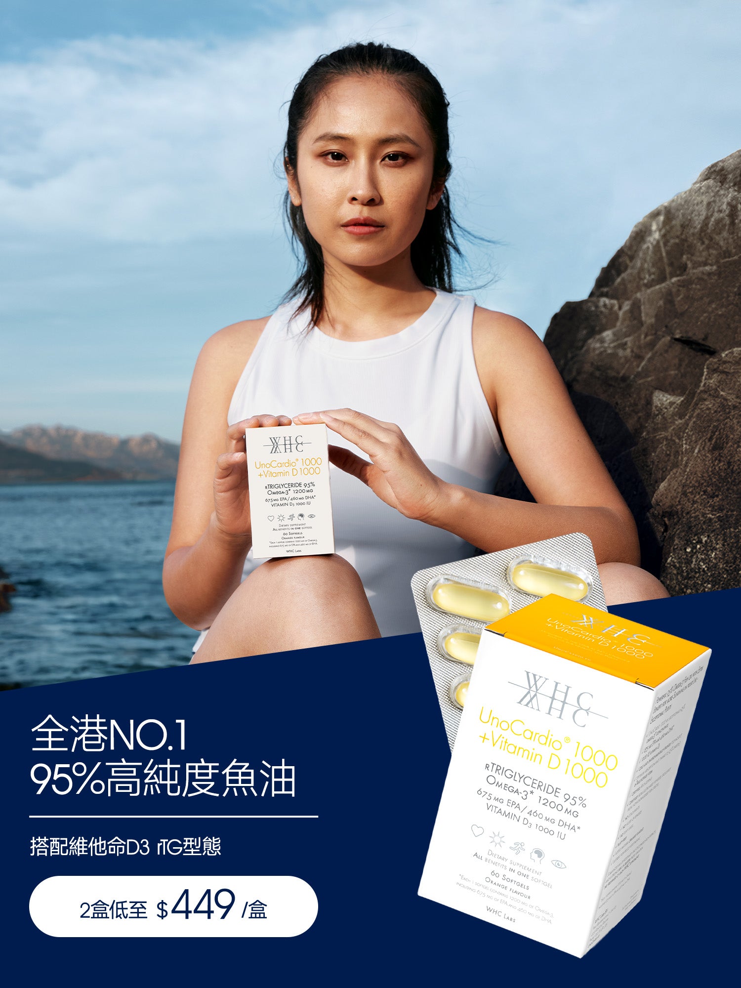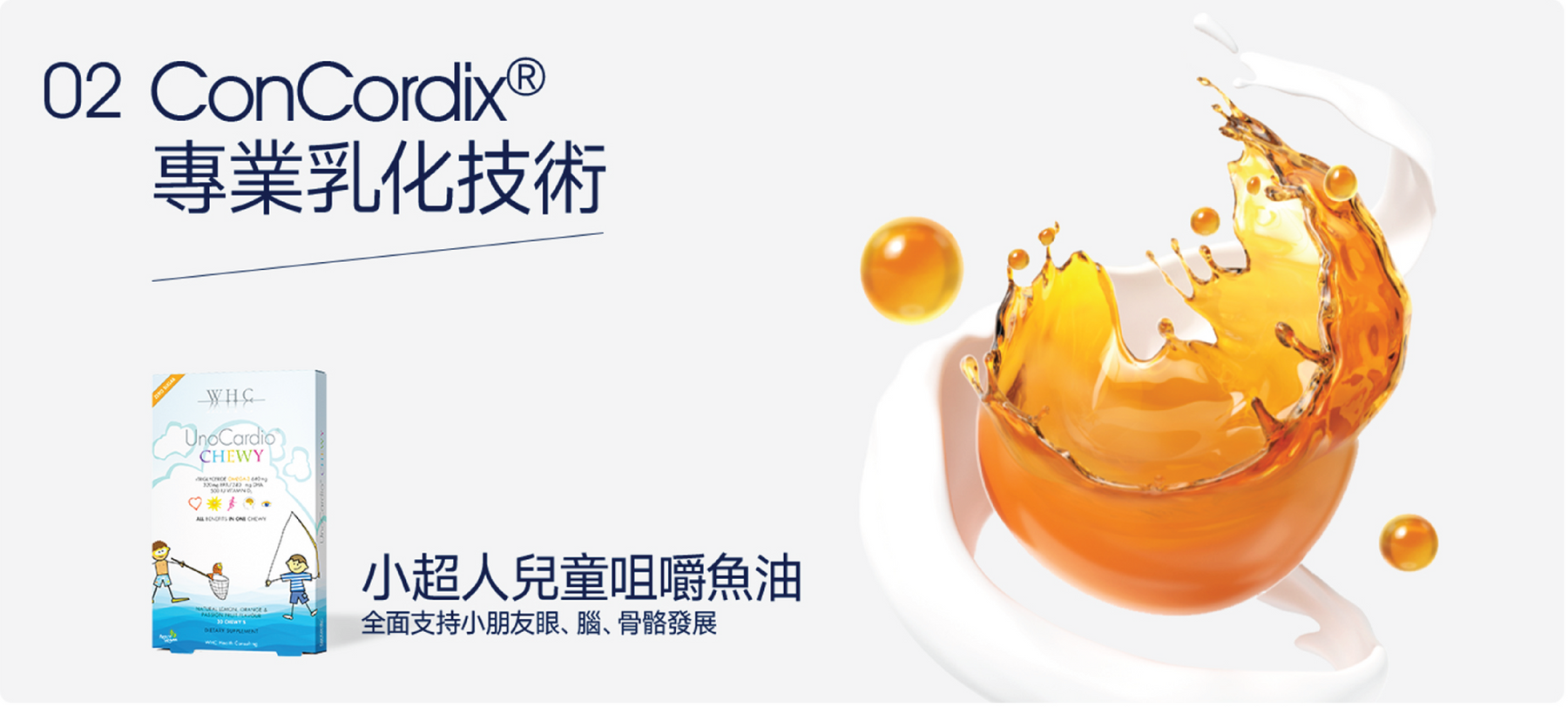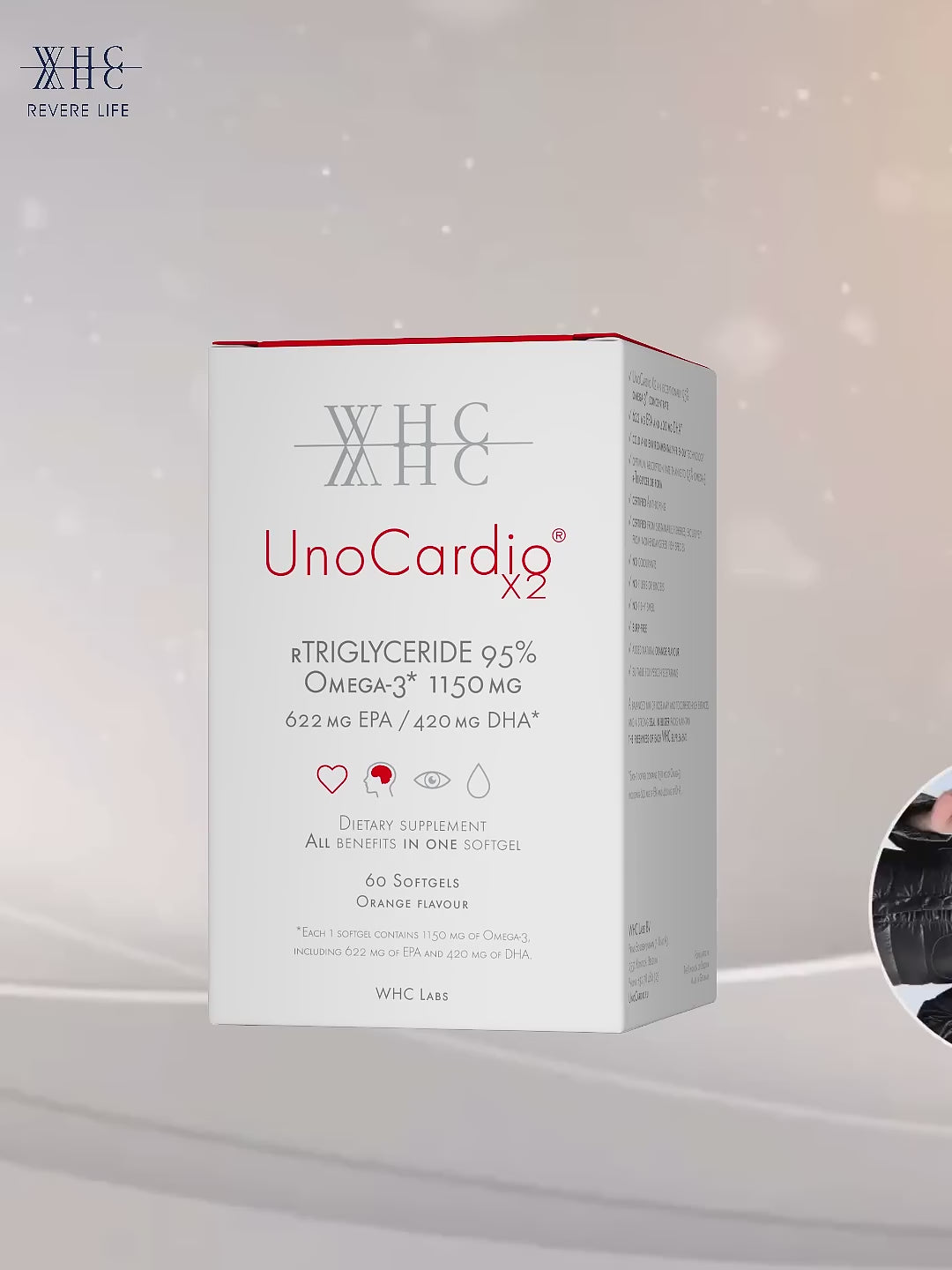 這些必需脂肪酸的健康益處已在許多研究中得到科學證明。WHC 的 UnoCardio® 補充劑含有 90–95% Omega-3,因此在單一軟膠囊中提供所需的 Omega-3,相當於 3-10 顆標準魚油軟膠囊。
