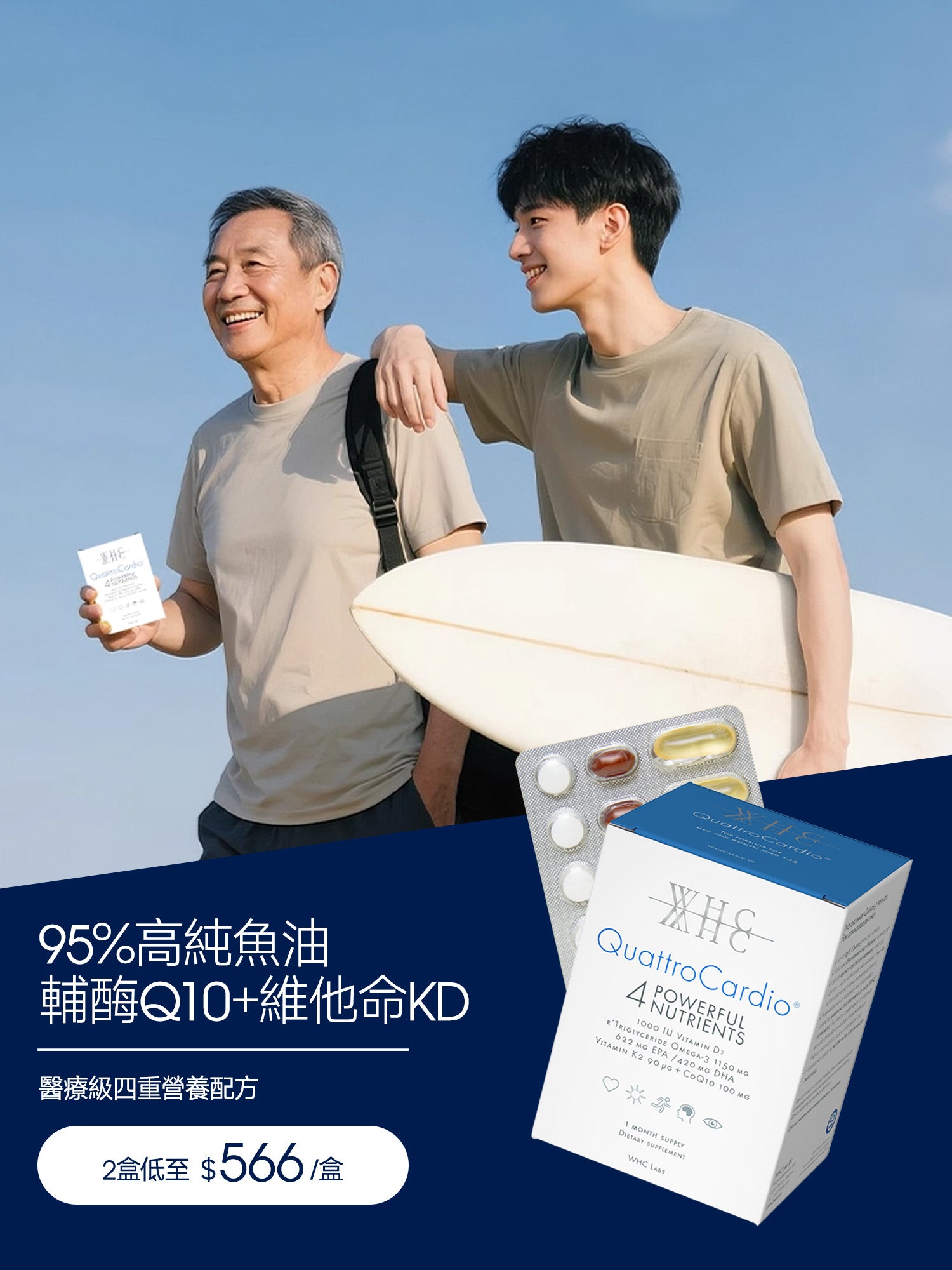 QuattroCardio® 藍寶盒 95%高純度深海魚油 三高配方 Q10+維他命K+D 90粒