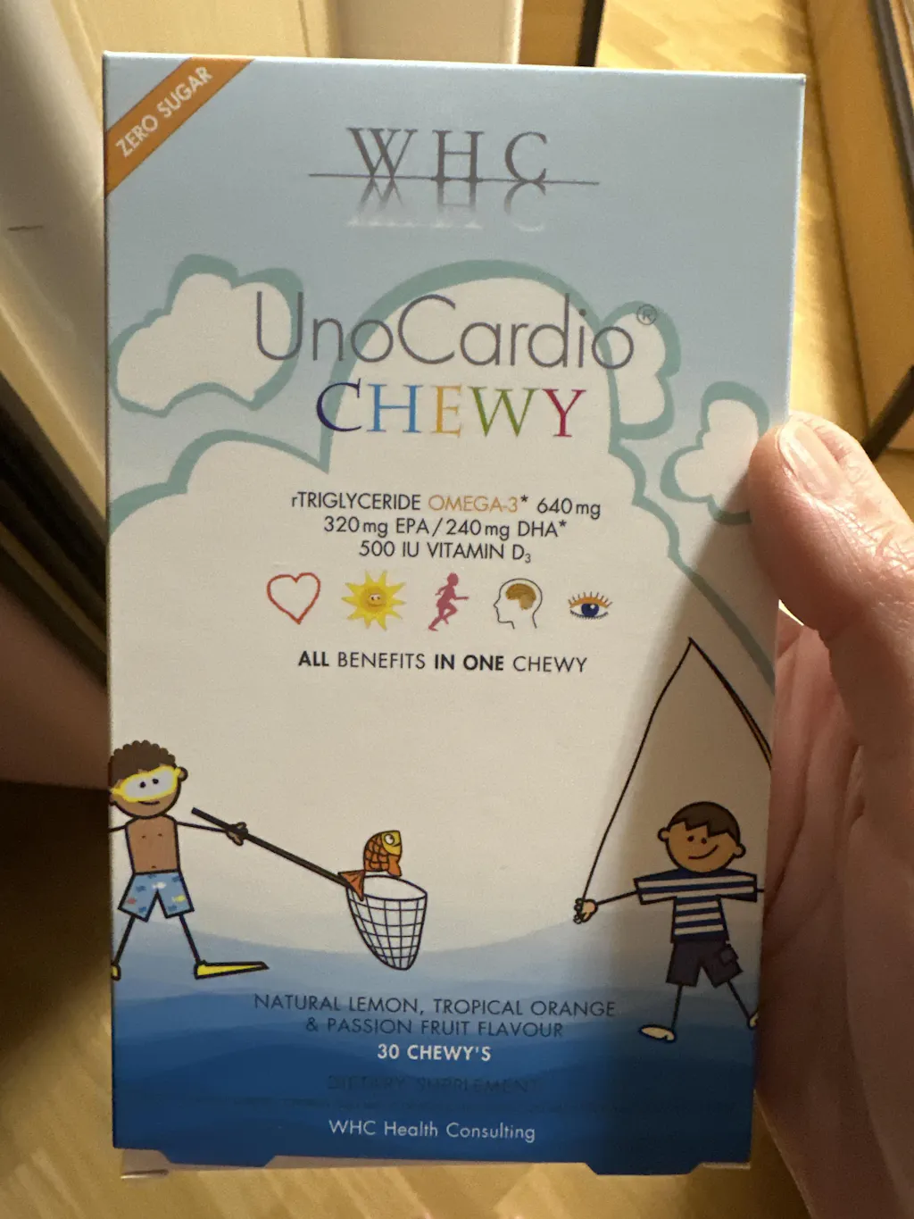 WHC小超人兒童咀嚼啫喱魚油碾壓「零食級軟糖」。市面軟糖常混入明膠蔗糖(Omega-3含量同吸收率低),小超人憑Concordix®專利技術將640mg高含量魚油製成酸甜啫喱,吸收率提高44%且零添加蔗糖,一粒等於三粒軟糖功效。